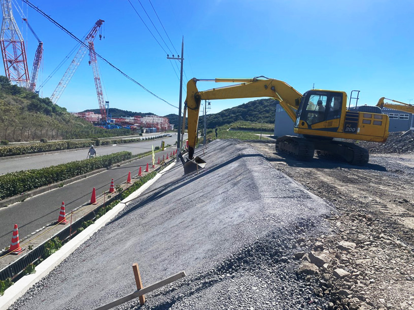 大型重機が安全に作業できるよう作業台の整備を行っています。