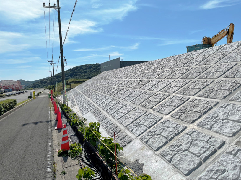 雨による洗堀や土砂の流出、のり面の崩壊を防止します。景観(警官)も良いですね。