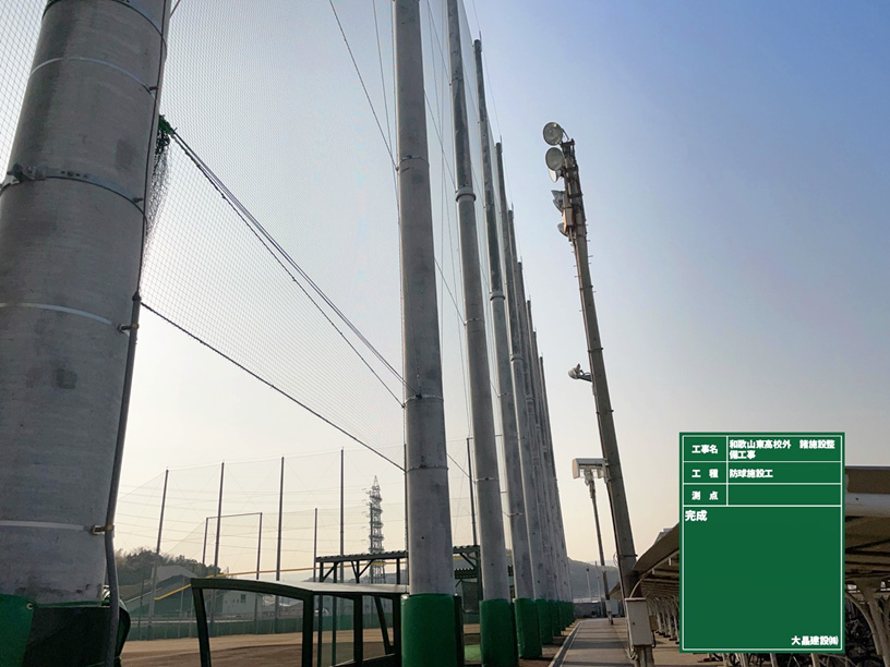 ネットの高さを上げて運動場を囲み完成です。
