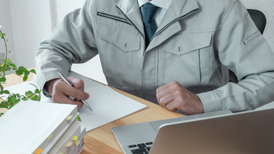 出社後は、まずメールや連絡事項をチェック。 今日の現場の流れを確認し、1日の準備を行います。